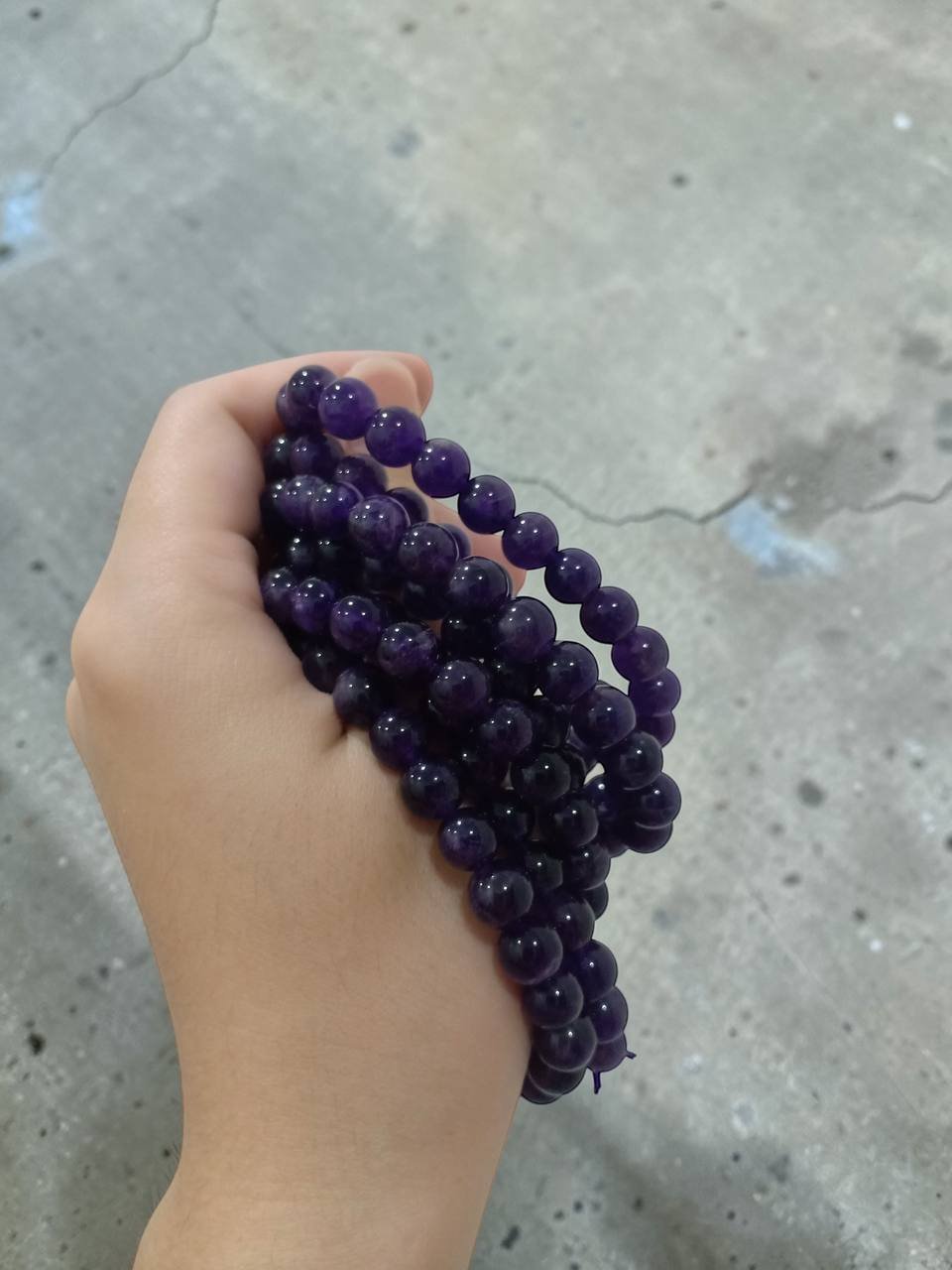 天然紫水晶圆珠手串,8mm 珠径,颜色深邃优雅。适合日常佩戴或送礼。