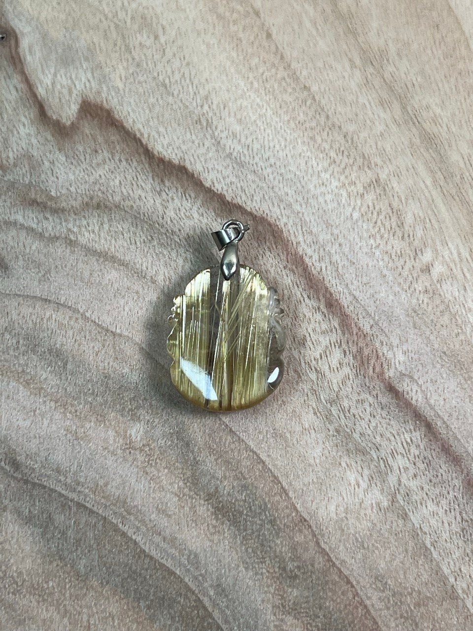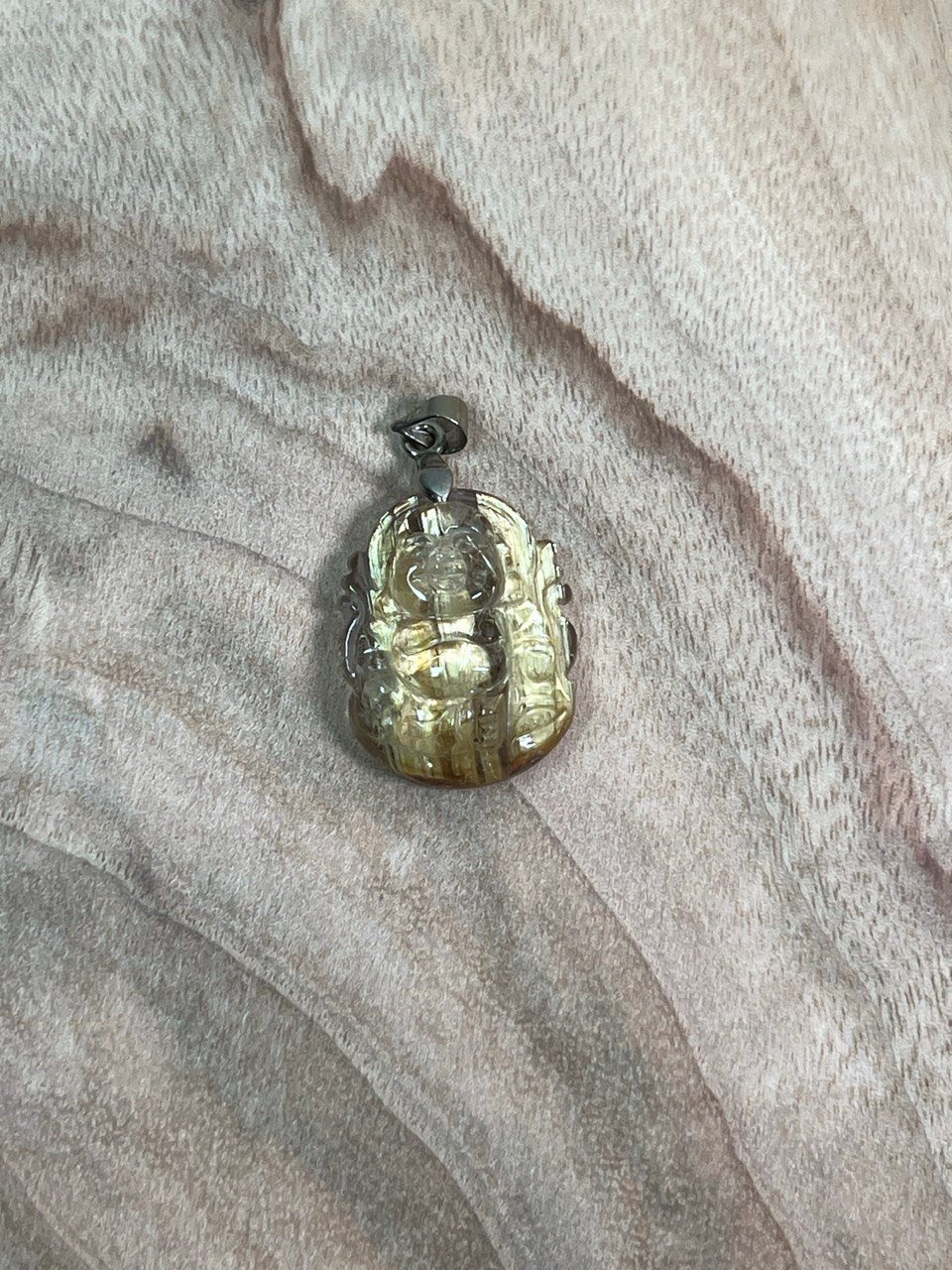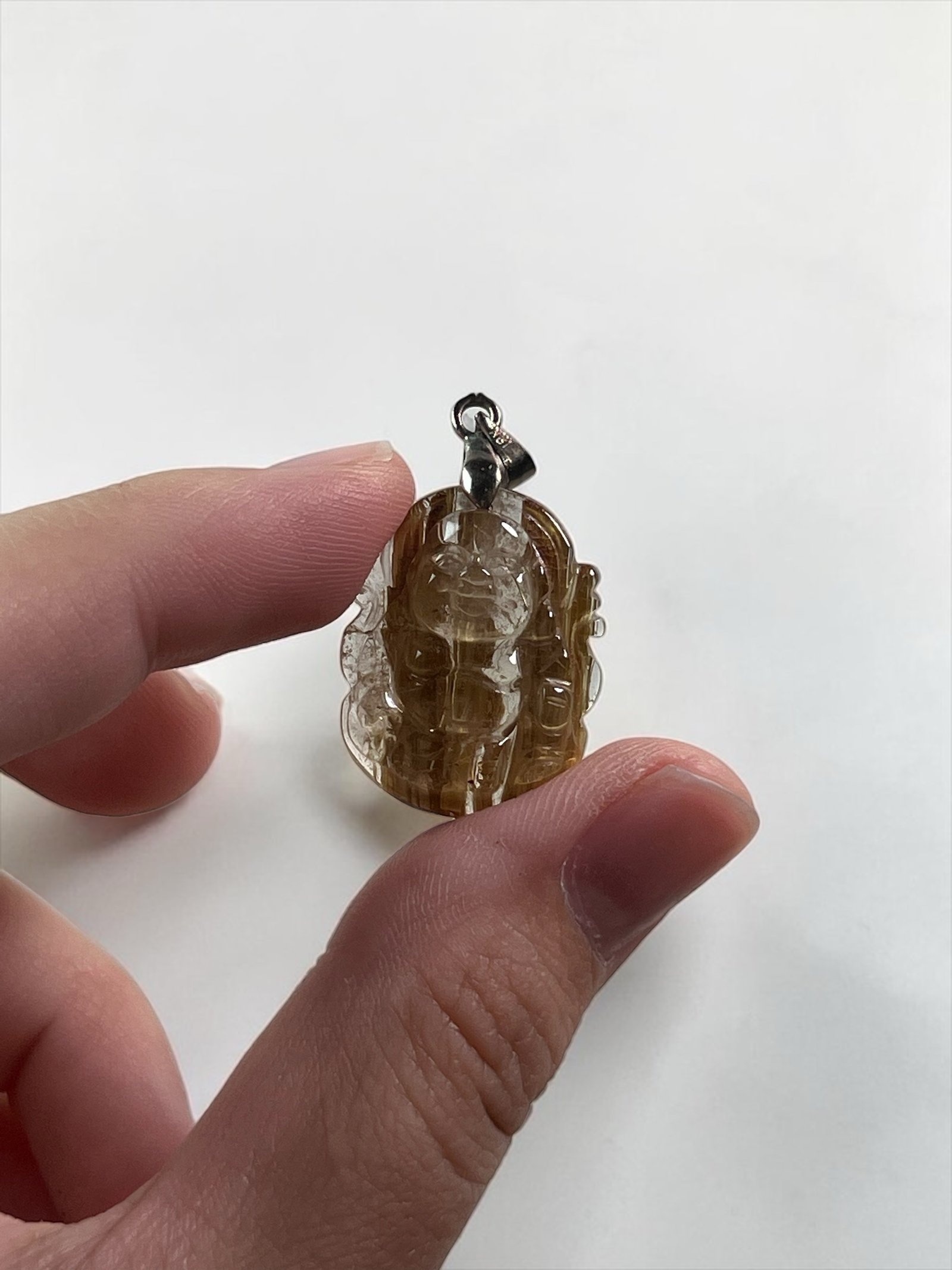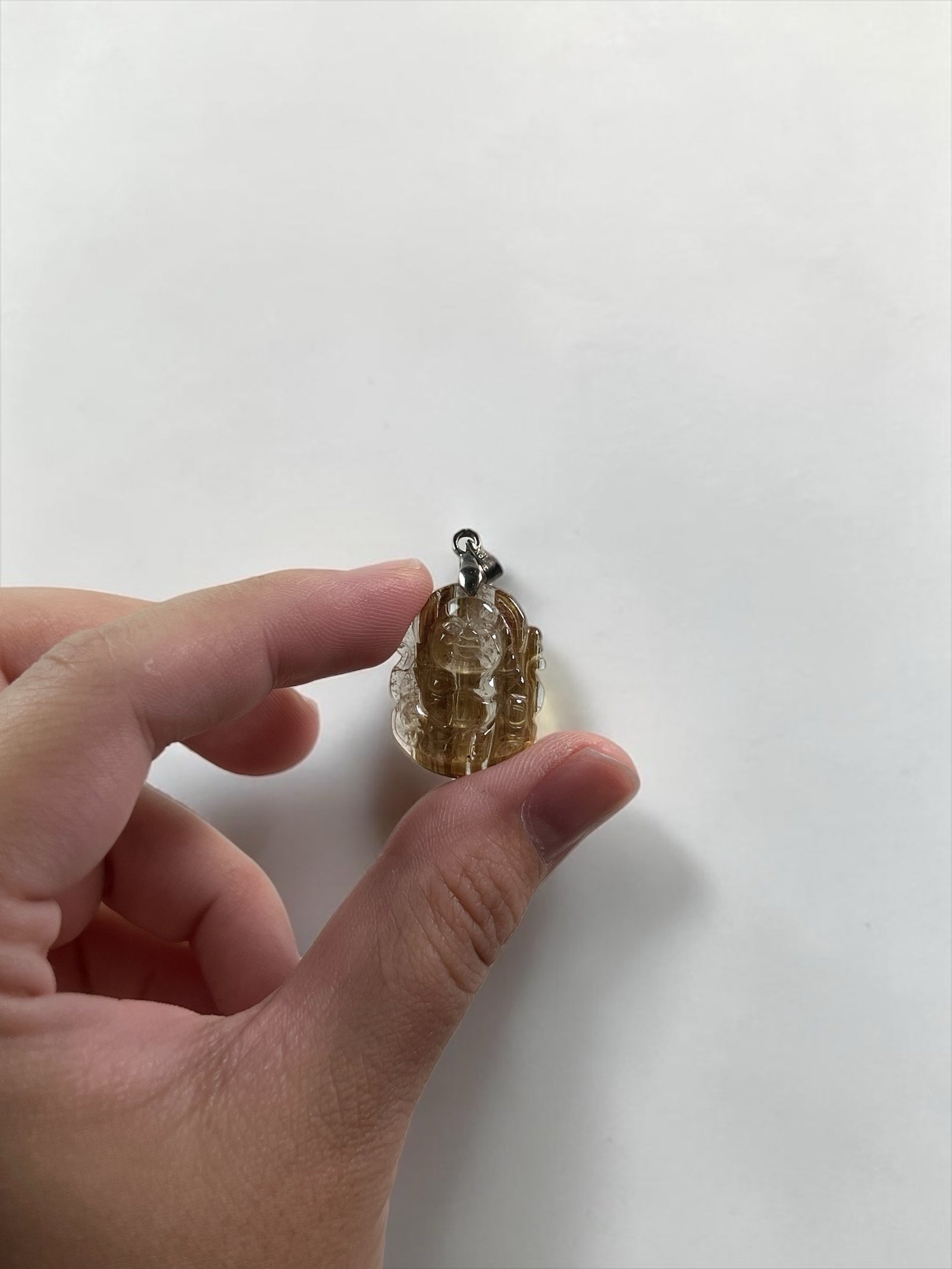 - 每颗雕刻与纹理略有不同 Each carving and pattern is uniquerutilated-quartz-maitreya-buddha-pendant