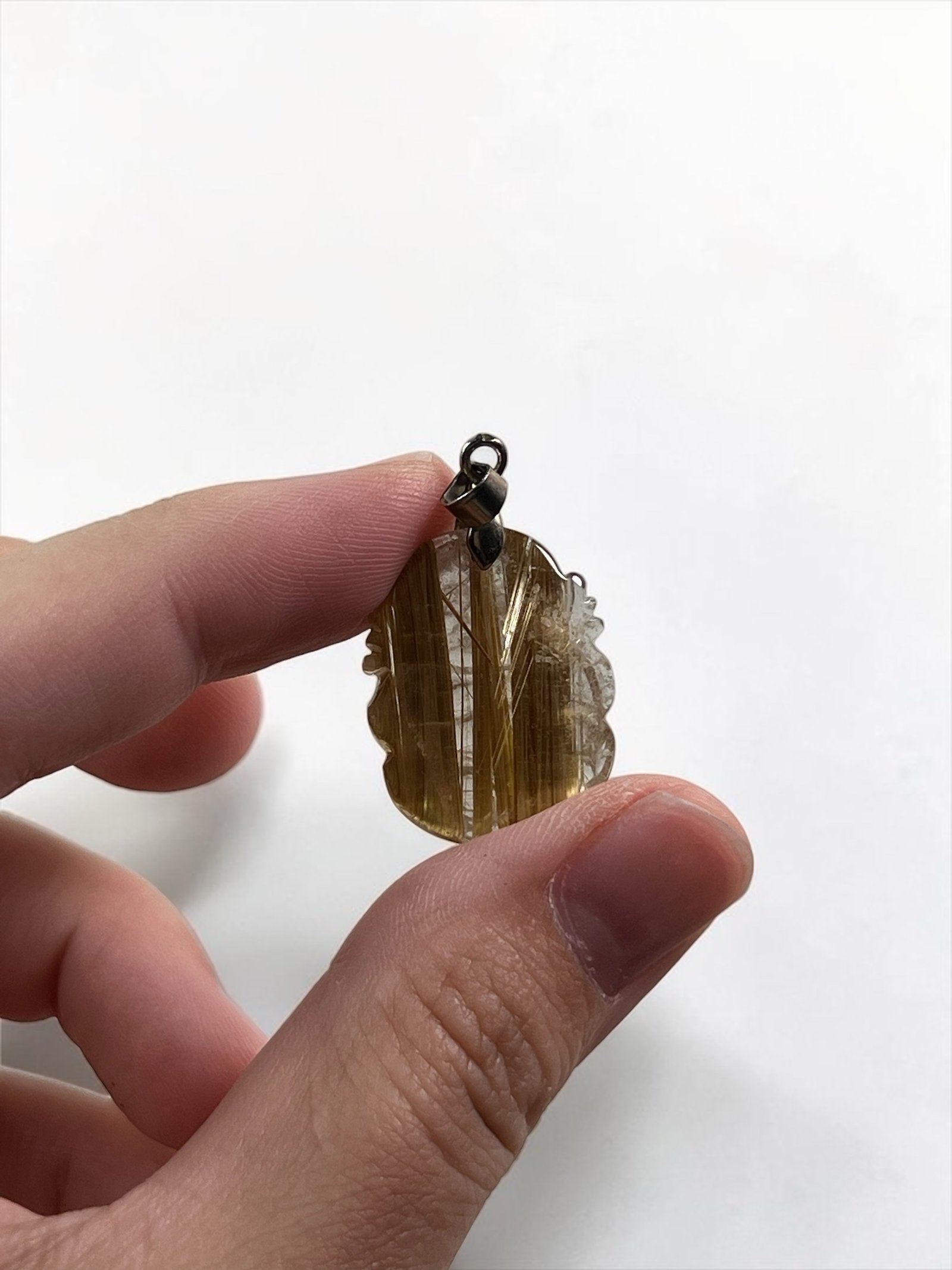 - 材质 Material:天然板钛水晶 + 金属扣 Natural rutilated quartz + metal bail