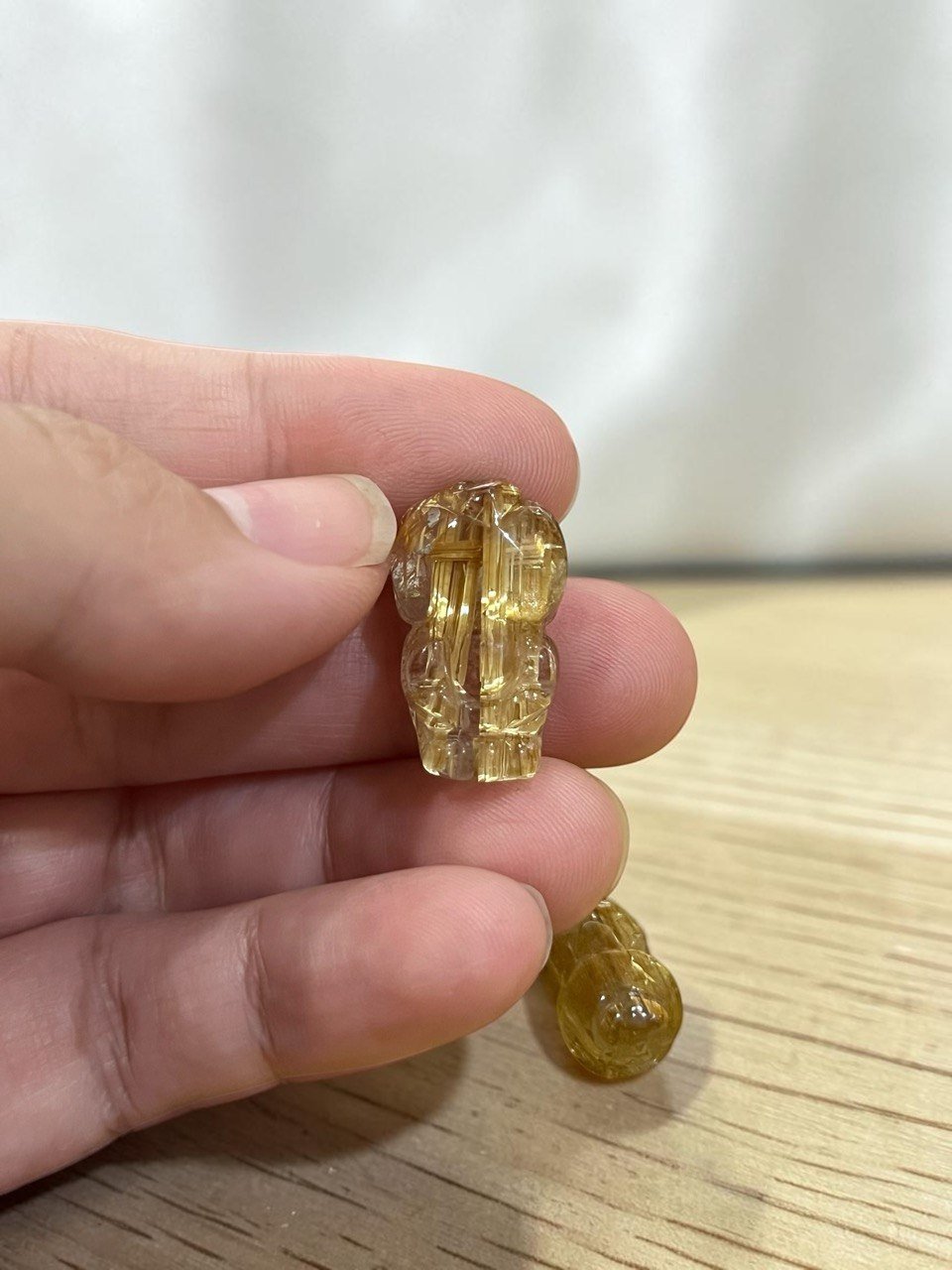 Crafted from high-quality rutilated quartz with visible rutile strands and excellent clarity.