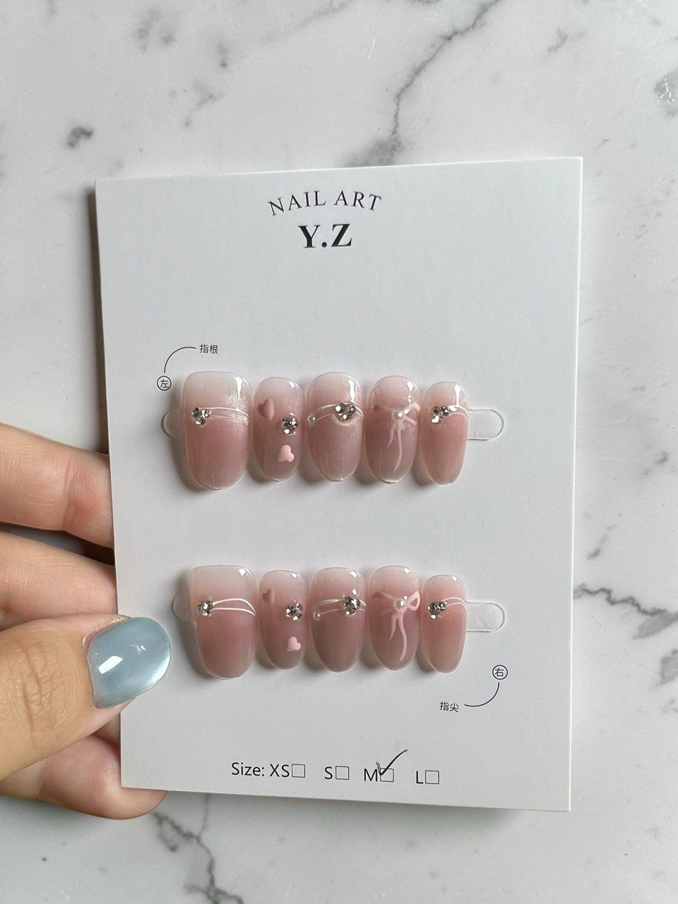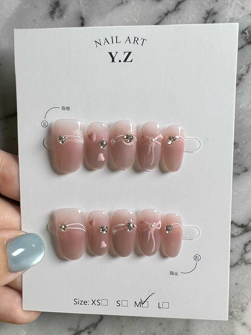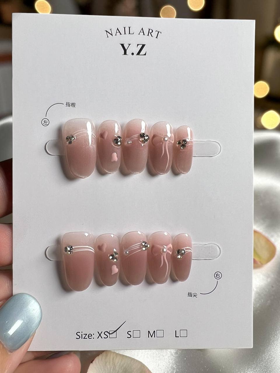 裸色渐变带来自然柔和的底色,果冻透感让整体更轻盈通透,搭配碎片与小钢珠细节点缀,在简约中增加层次,让设计低调却不单调。