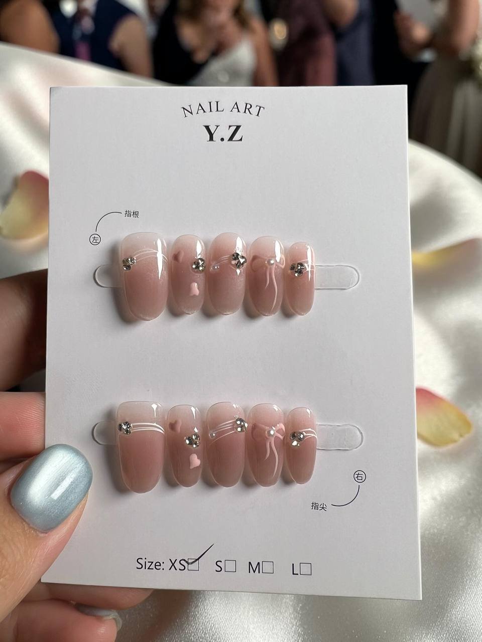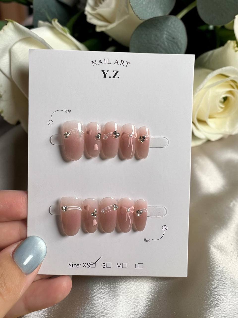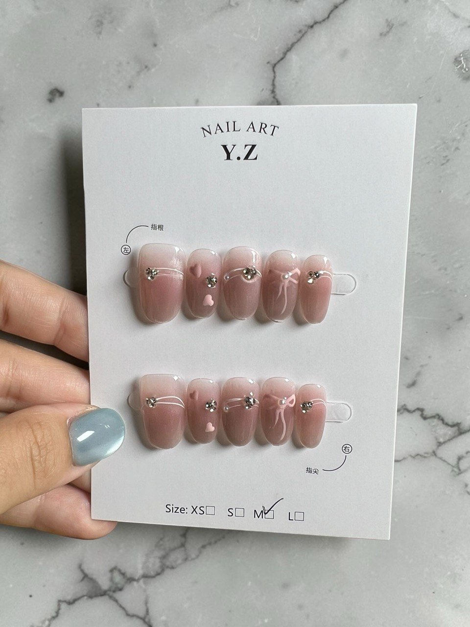 裸色渐变带来自然柔和的底色,果冻透感让整体更轻盈通透,搭配碎片与小钢珠细节点缀,在简约中增加层次,让设计低调却不单调。