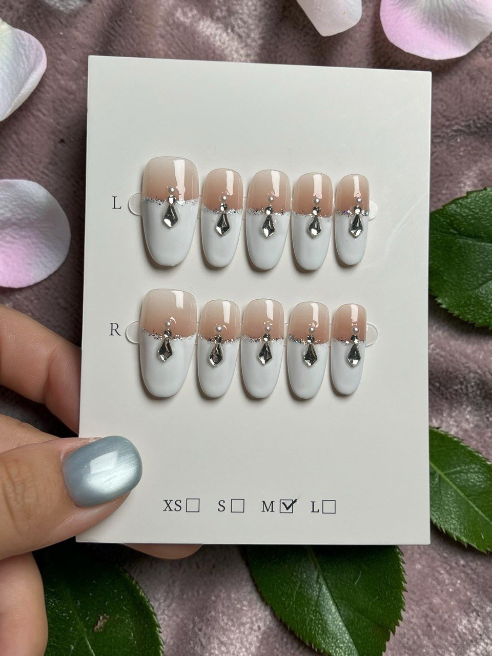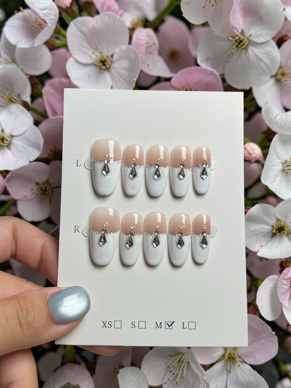 Pearl press on nails are one of the most popular choices for achieving a luxury nail look without visiting a salon. These press on nails combine nude tones with pearl and crystal elements, offering a feminine, elegant, and timeless aesthetic.