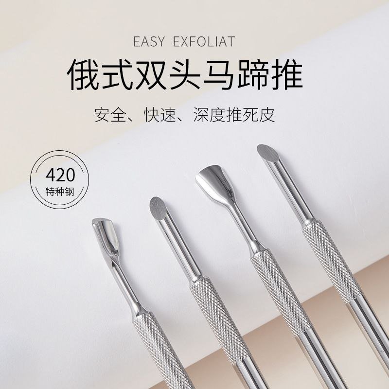 这款双头死皮推采用优质不锈钢材质,坚固耐用,专为美甲护理设计。双头设计可满足不同需求,一端用于推起指缘死皮,另一端用于清理细缝,操作方便且安全不伤甲。